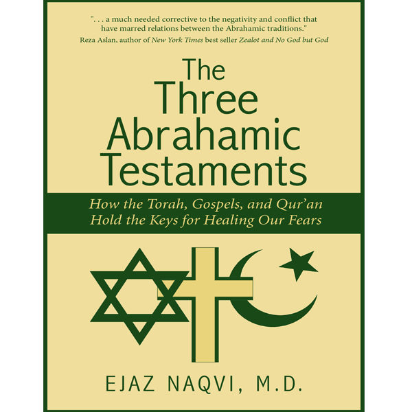 “Open your heart – open your mind – open this book. The Three Abraham Testaments is a college textbook and bestseller rolled into one. Use it like a coffee table book. Start on any page, savor a kernel and set aside the rest for later. Or read until you are so moved that you must pause to digest. The scriptural references and wisdom quotes are stand-alone gems. The ‘Time to Ponder’ and ‘Discussion Points for Dialogue and Healing’ provide ready-made talking points for book groups, classroom settings and conversations over the dinner table. There is no hierarchy in this book except that the Holy One is the Creator and Sustainer of all. By eliminating hierarchy, Dr. Ejaz Naqvi has side-stepped the major competitive questions of ‘whose religion is right’ and ‘whose religion is best.’ Instead, he touches upon the essence of all three Abrahamic faiths and the religious streams that spring from them.” –Rabbi Pamela Frydman, founding rabbi of Or Shalom Jewish Community and author of Calling on God: Sacred Jewish Teachings for Seekers of All Faiths